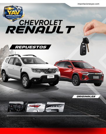 Ofrecemos repuestos originales Chevrolet y Renault con calidad garantizada, respaldo técnico y total confianza. Contamos con excelente disponibilidad y envíos a nivel nacional. Consulta el repuesto que necesitas y recibe asesoría especializada para mantener tu vehículo en óptimo funcionamiento.